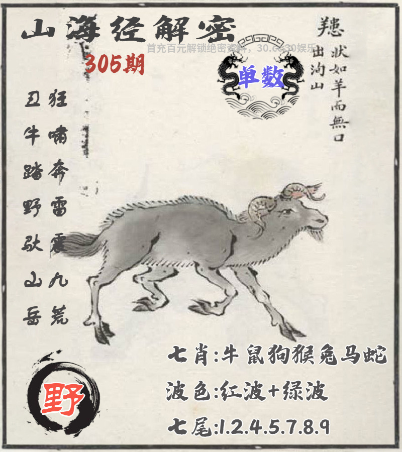 306期:单双笔二肖双笔+马蛇】开:牛17准